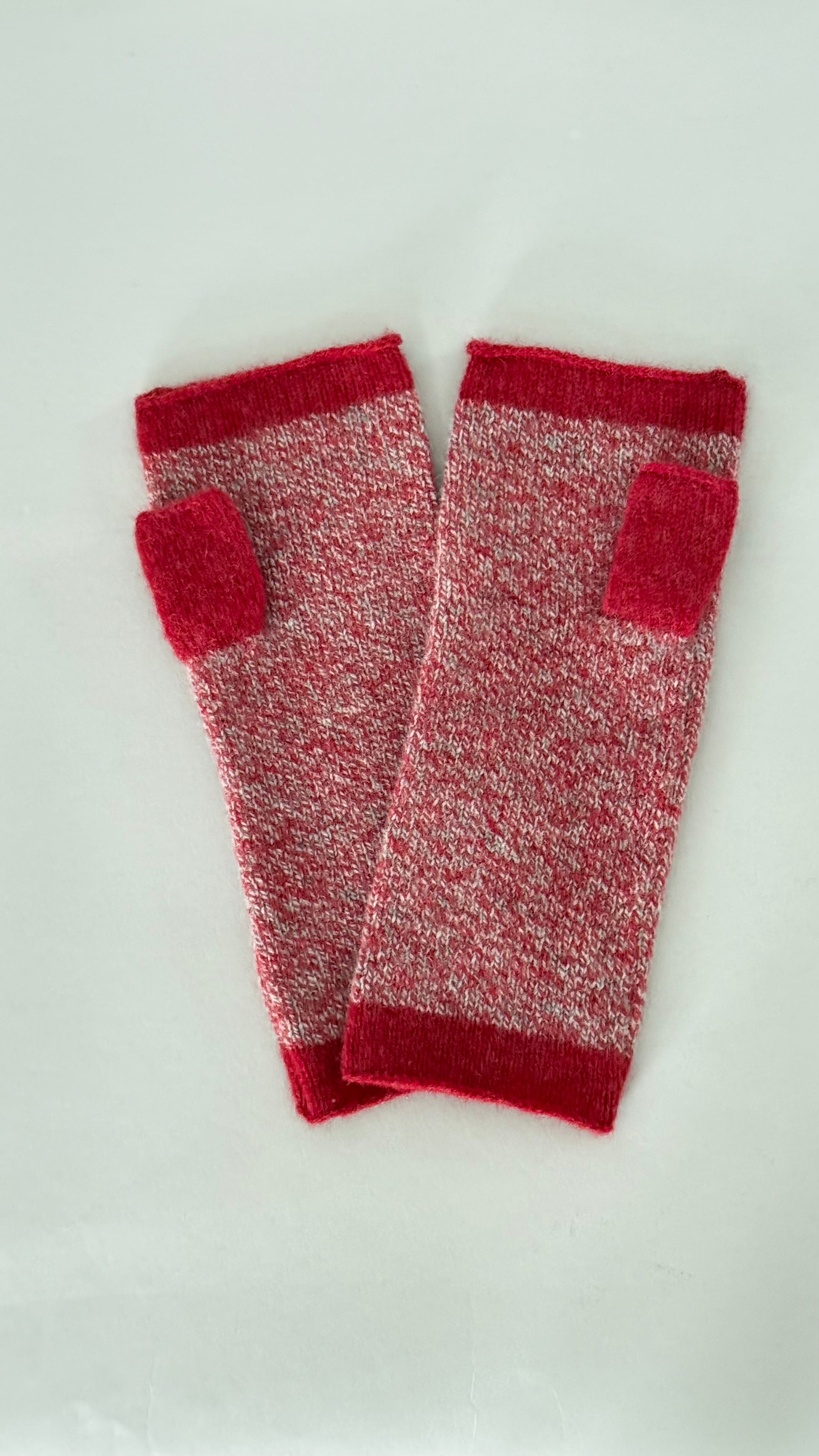 Mittens - Knitted fingerless marled mittens with contrast trims