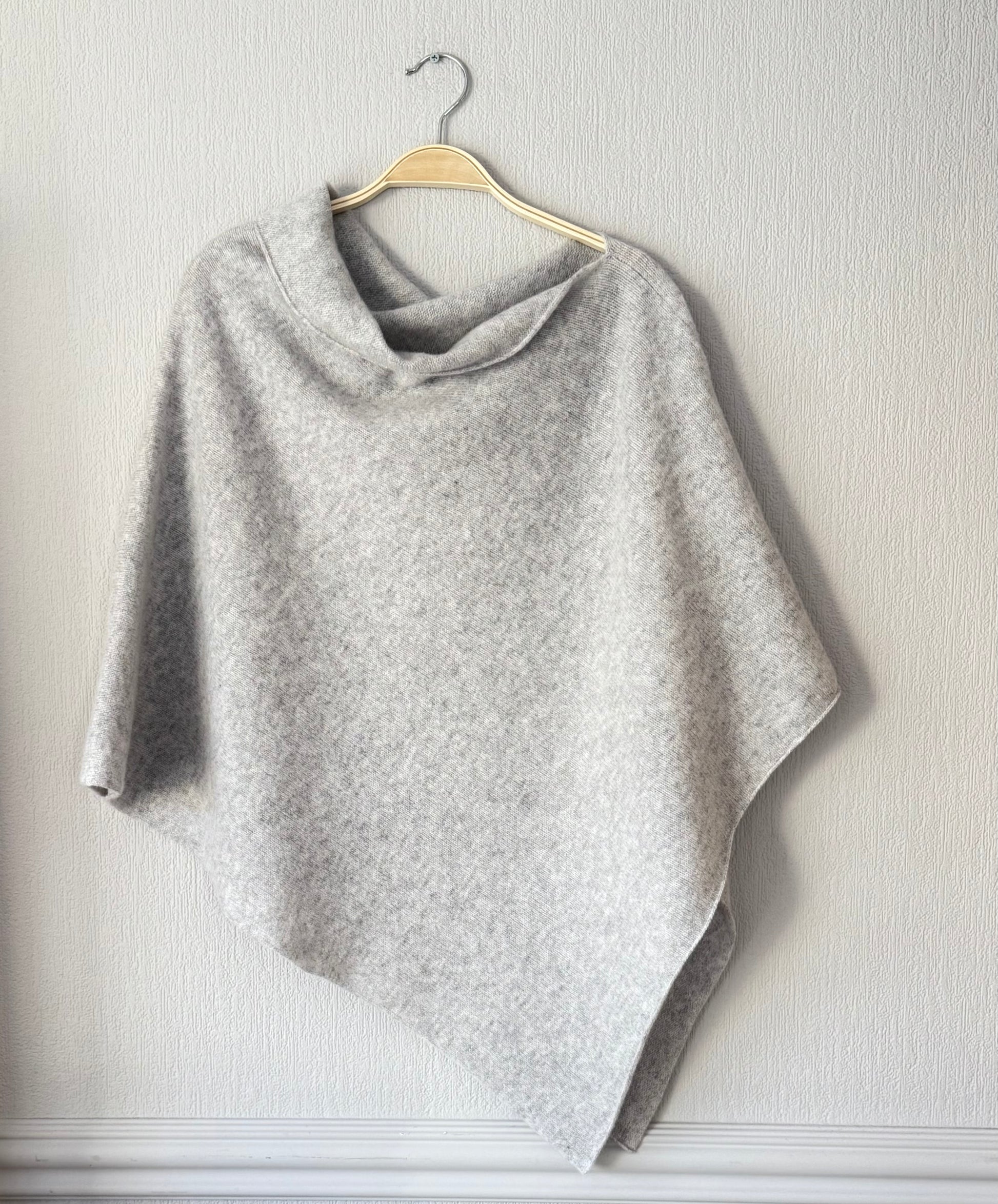 Can be worn in different ways, poncho/capelet scarf/snood or over the head, side seam in front to give detail.