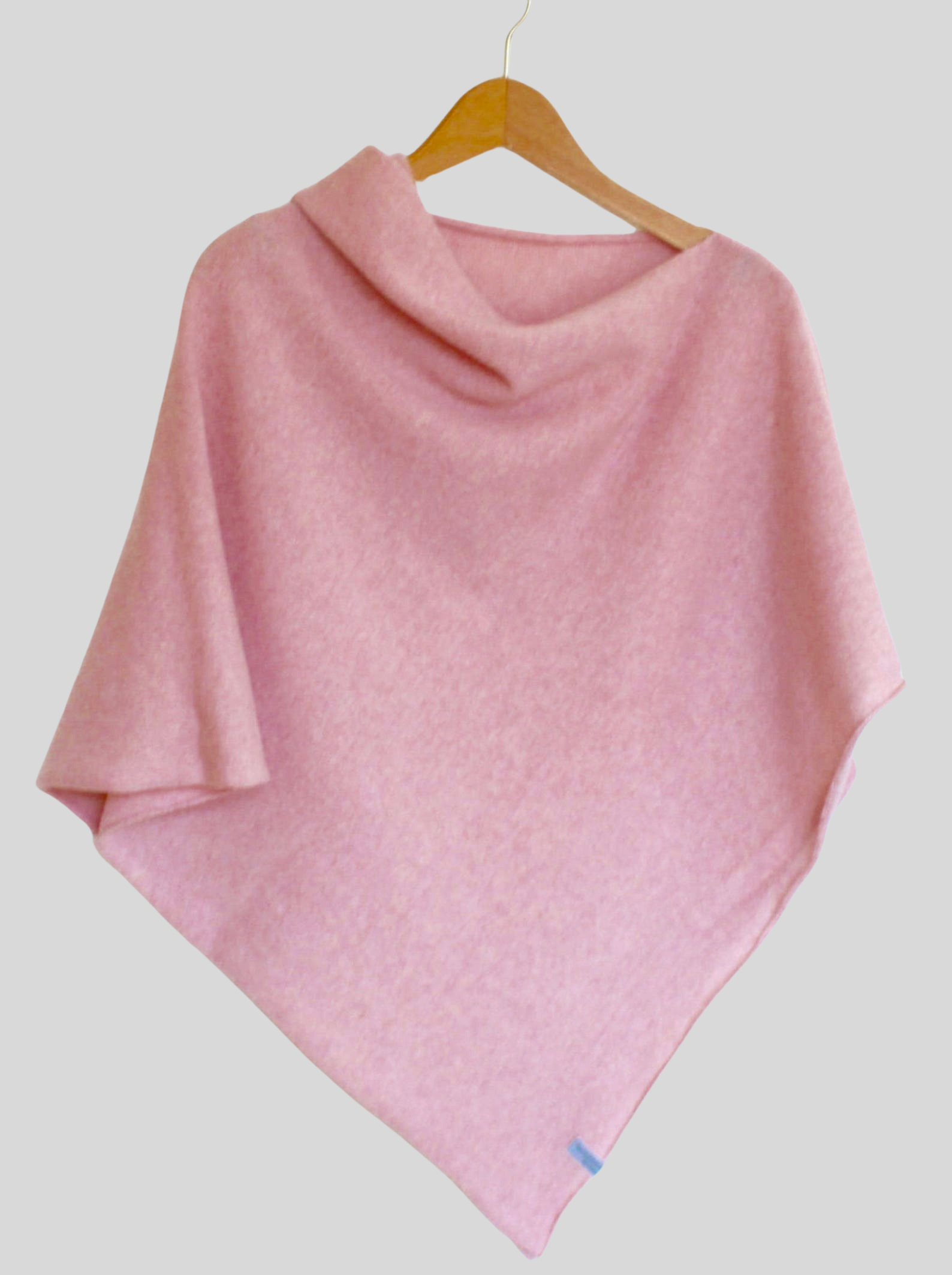 Can be worn in different ways, poncho, scarf/snood or over the head, side seam in front to give detail.