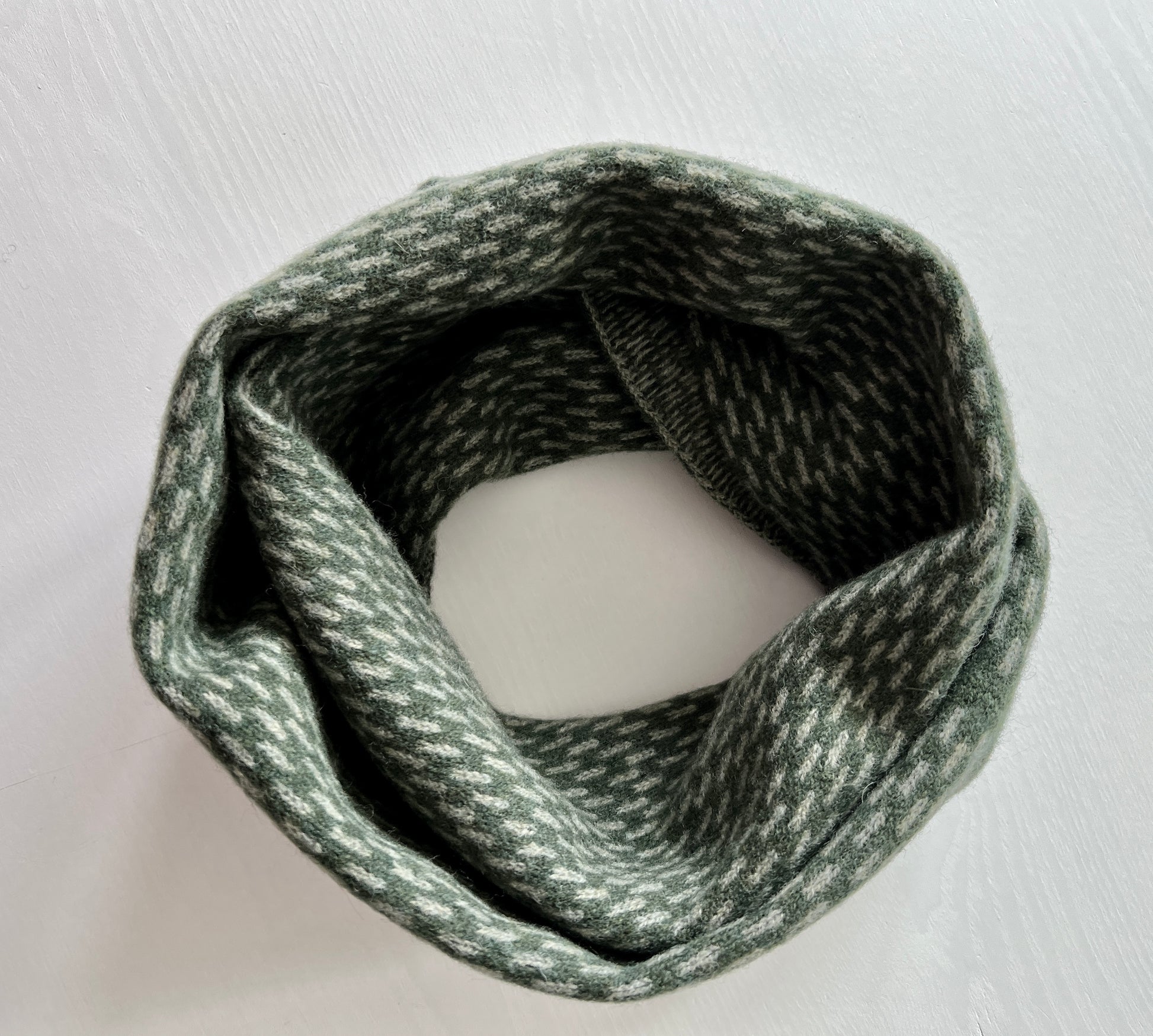 Snood - Infinity scarf soft merino lambswool rosemary green with orchard green dots