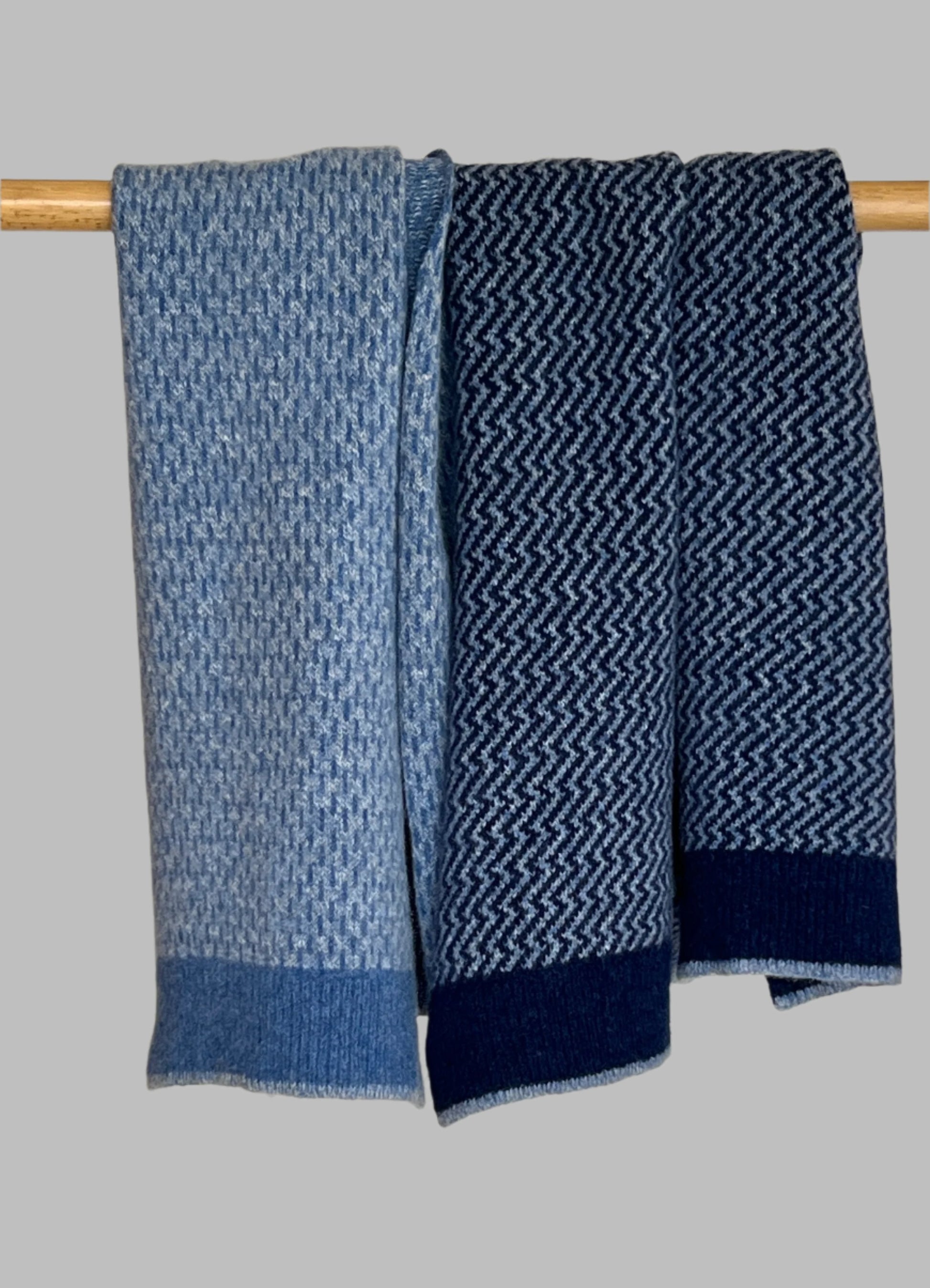 Scarf - super soft merino lambswool Nordic zigzag pattern scarf in marled yarn