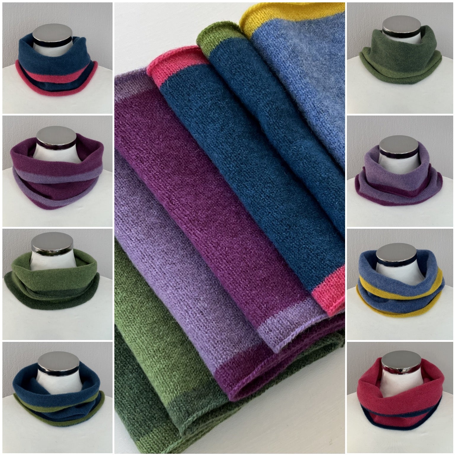 Snood - Unisex knitted soft merino lambswool light weight neck warmer with contrast trim